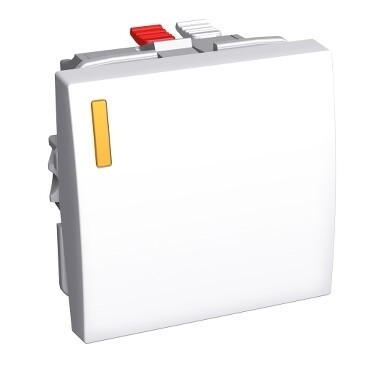 Выключатель одноклавишный Altira Schneider Electric (цвет белый RAL9003) с подсветкой, без ламп с быстрозажимными контактами подходит для сетей 250 В, на ток 16 А.