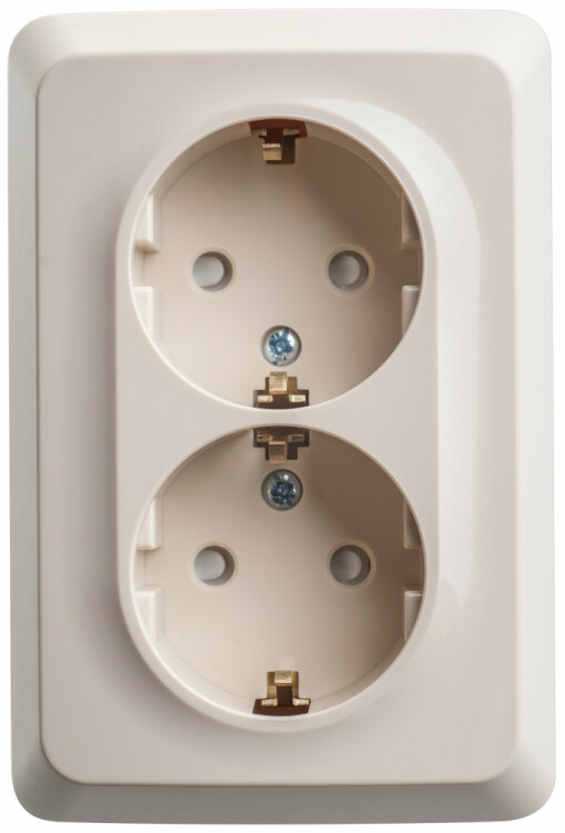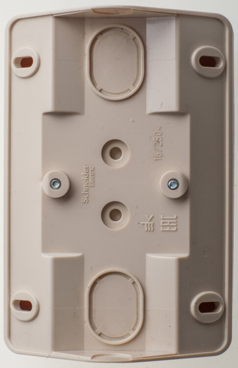 Розетка Systeme Electric (ранее Schneider Electric) ЭТЮД (кремовый, открытой установки) двухместная угловая с заземлением и шторками предназначена для применения в сетях до 250В, на ток до 16А. Ее конструкция позволяет установить розетку в угол помещения. Шторки и заземление обеспечивают дополнительную безопасность при косвенных прикосновениях. Сделано в России.