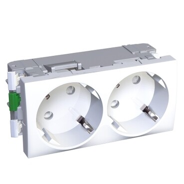 Розетка двойная Altira Schneider Electric (цвет белый RAL9003) с заземлением и шторками подходит для сетей 250 В, на ток 16 А.