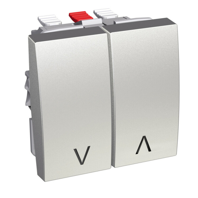 Выключатель двухклавишный Altira Schneider Electric (цвет металлик) для жалюзи без фиксации подходит для сетей 250 В, на ток 10 А.