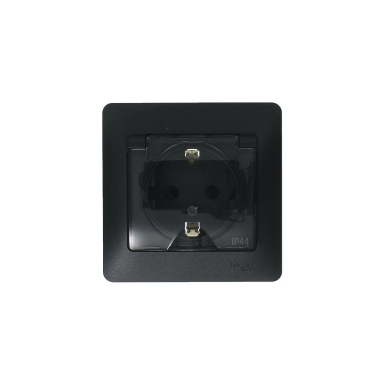 Розетка Systeme Electric (ранее Schneider Electric) серии Glossa (в сборе, цвет антрацит) одинарная с заземлением, шторкам и и крышкой подходит для сетей 250 В, на ток 16 А. Изделие со степенью защиты IP44 обеспечит безопасность использования в ванной и на кухне. Заземляющий контакт обеспечивает дополнительную защиту от удара электрическим током. При наличии заземления электрический потенциал уходит в землю, защищая человека. Выполнен из материала PС+ASA, стойкого к УФ-излучению и появлению царапин.