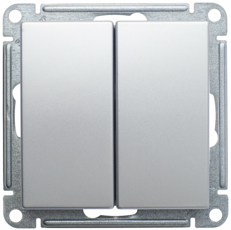 Механизм Systeme Electric (ранее Schneider Electric) W59 (цвет матовый хром) переключателя 2-клавишного с подсветкой подходит для сетей 250 В, на ток до 10 А.