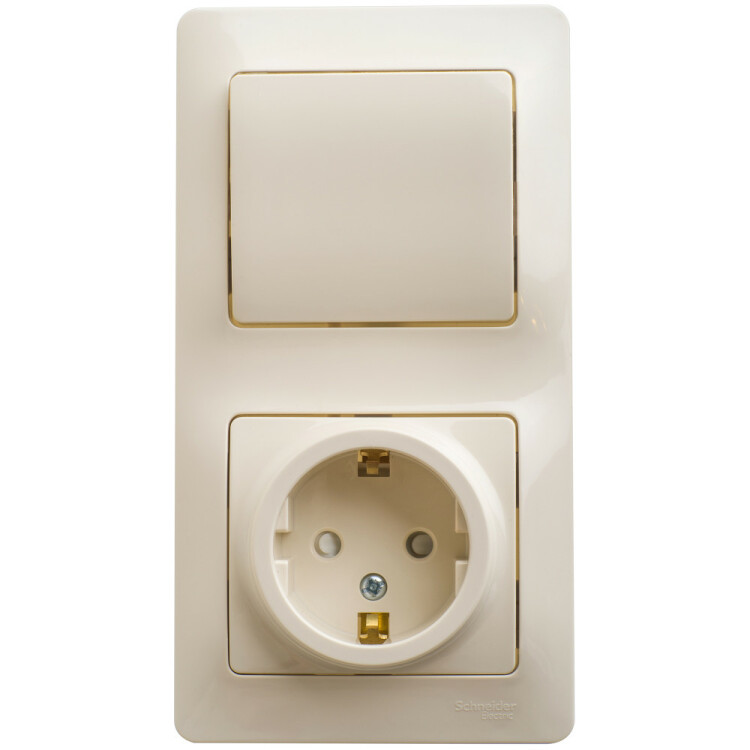Блок комбинированный Systeme Electric (ранее Schneider Electric) серии Glossa (в сборе, цвет бежевый) предназначен для сетей до 250 В, состоит из розетки с заземлением и шторками на 16 А и 1-клавишного выключателя на 10 А. Блок удобен в применении и отлично подходит для коридора. Заземляющий контакт обеспечивает дополнительную защиту от удара электрическим током. При наличии заземления электрический потенциал уходит в землю, защищая человека. Выполнен из материала PС+ASA, стойкого к УФ-излучению и появлению царапин.