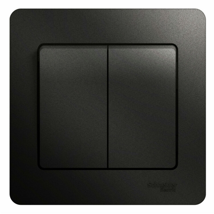 Выключатель Systeme Electric (ранее Schneider Electric) серии Glossa (в сборе, цвет антрацит) двухклавишный подходит для сетей 250 В, на ток 10 А.