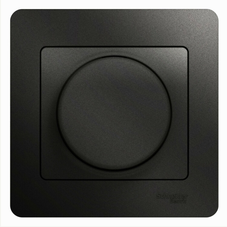 Светорегулятор Systeme Electric (ранее Schneider Electric) серии Glossa (в сборе, цвет антрацит) поворотный для нагрузки мощностью до 300 Вт.
