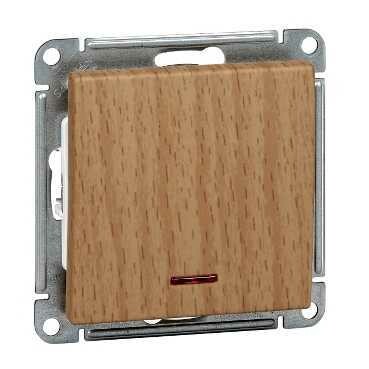 Механизм Schneider Electric W59 (цвет бук) выключателя 1-клавишного с подсветкой подходит для сетей 250 В, на ток до 10 А.