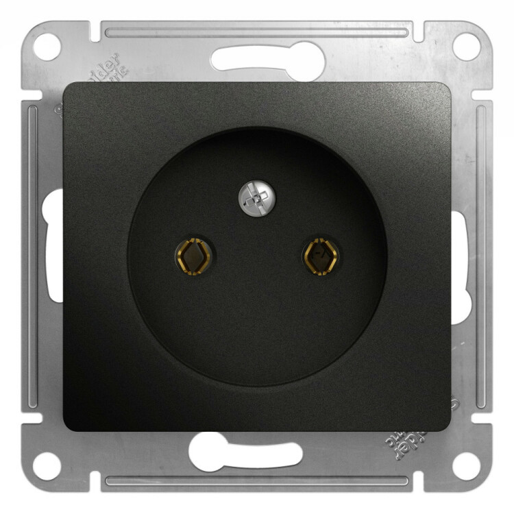 Механизм Systeme Electric (ранее Schneider Electric) серии Glossa (цвет антрацит) розетки одинарной без заземления и без шторок подходит для сетей 250 В, на ток 16 А. Выполнен из материала PС+ASA, стойкого к УФ-излучению и появлению царапин. Эргономичные клеммы розеток расположены в один ряд.