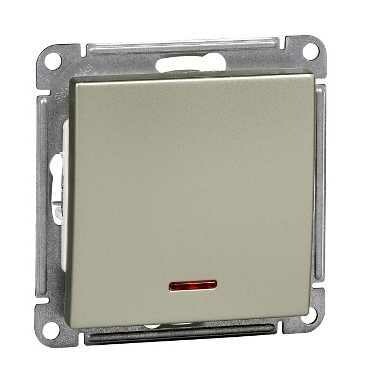 Механизм Systeme Electric (ранее Schneider Electric) W59 (цвет шампань) выключателя 1-клавишного с подсветкой подходит для сетей 250 В, на ток до 10 А.
