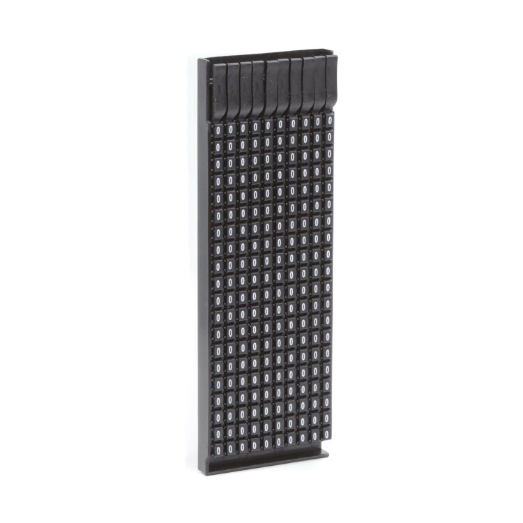 Ручная маркировка системы «Марк» (Mark) 3 для маркировки проводов без разъединения электрической цепи из полиамида 6.6. Температура эксплуатации от –40 до +100 °С. Боковые штифты надёжно фиксируют соединение друг с другом и позволяют добиться точного выравнивания маркеров. Цвет маркеров соответствует международной кодировке. Символ «0» белым цветом на чёрном маркере для сечения провода 0.5-1.5 мм². 200 маркеров в упаковке.