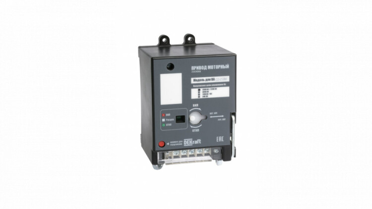 Привод моторный ПМ-333 Dekraft для автоматических выключателей серии ВА-333; предназначен для дистанционного включени я/отключения выключателей; ном. напряжение - 230 В пер.тока; ном.мощность – 120 Вт; установка – с лицевой стороны выключателя; присоединяемые провода – 1,0…2,5 кв. мм. Приводы особенно важны для применения в электроустановках с затрудненным доступом, а также в тех случаях, когда ежедневно требуется выполнять большое количество операций включения/отключения.