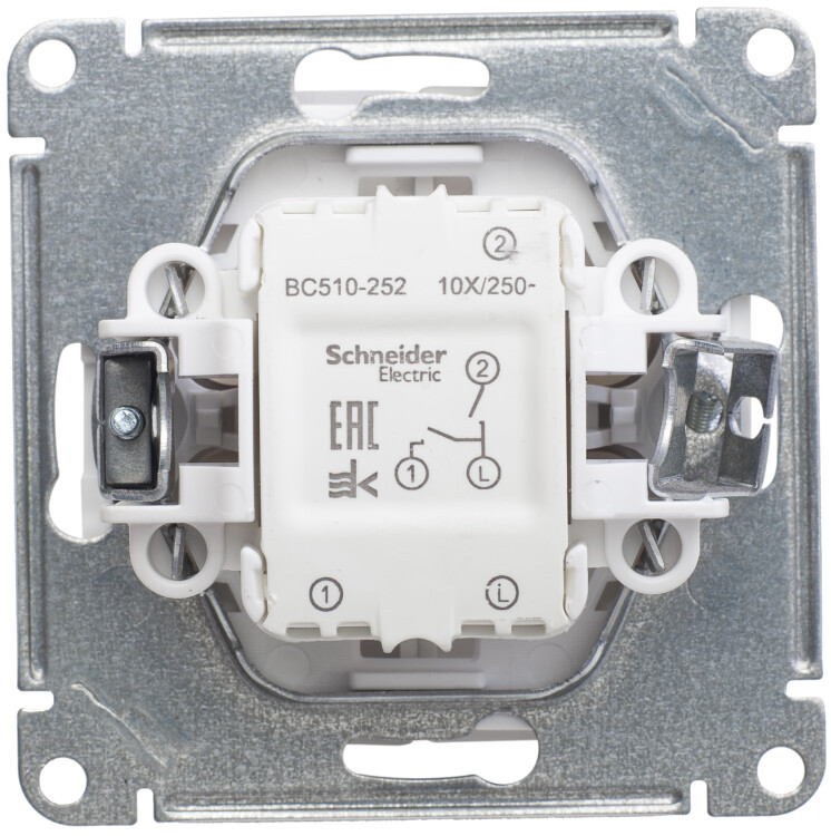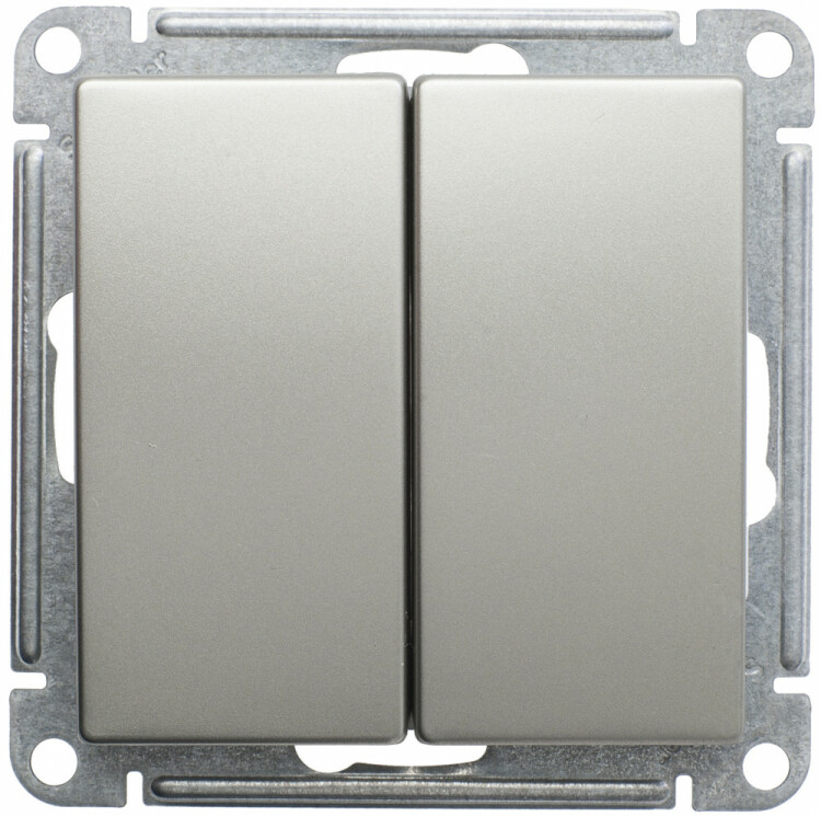 Механизм Systeme Electric (ранее Schneider Electric) W59 (цвет шампань) выключателя 2-клавишного подходит для сетей 250 В, на ток до 10 А.