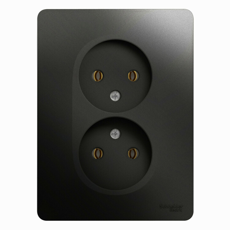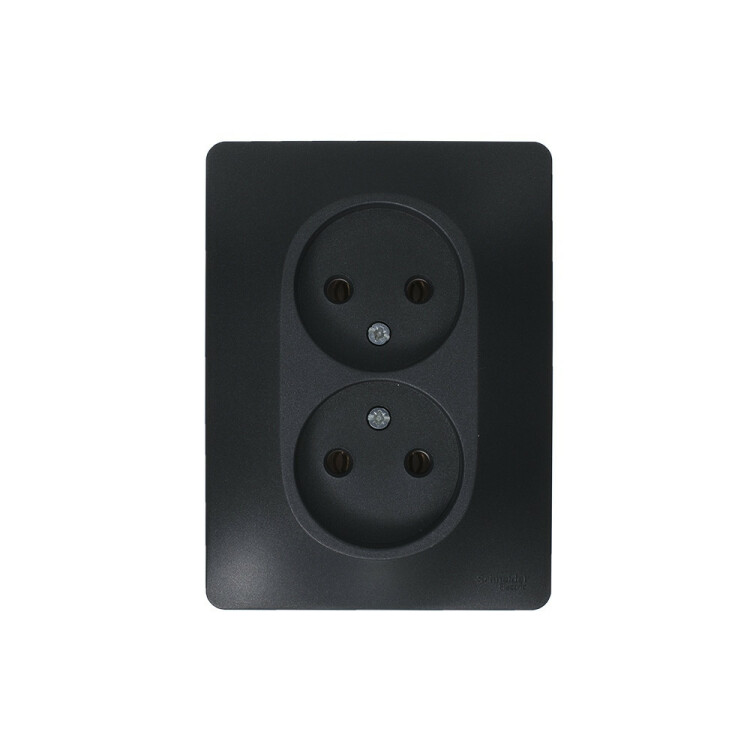 Розетка двойная Systeme Electric (ранее Schneider Electric) серии Glossa (в сборе, цвет антрацит) без заземления и без шторок подходит для сетей 250 В, на ток 16 А. Выполнен из материала PС+ASA, стойкого к УФ-излучению и появлению царапин. Эргономичные клеммы розеток расположены в один ряд. Двойная розетка позволяет подключить два устройства в одном месте.