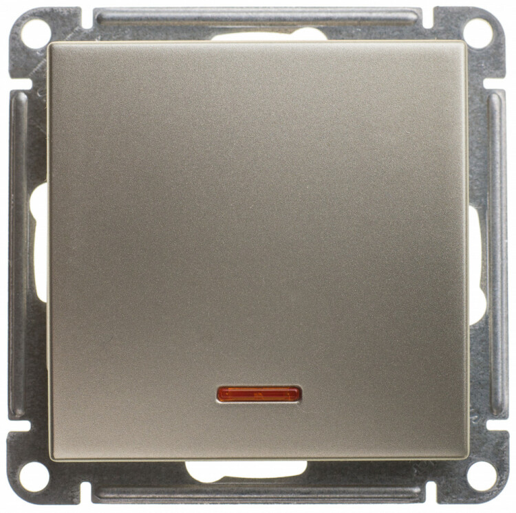 Механизм Systeme Electric (ранее Schneider Electric) W59 (цвет шампань) переключателя 1-клавишного с подсветкой подходит для сетей 250 В, на ток до 10 А.