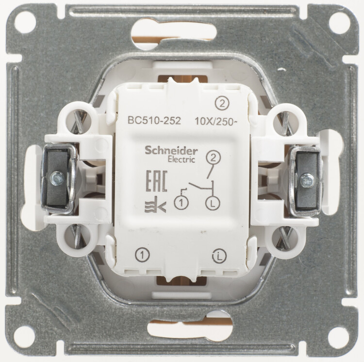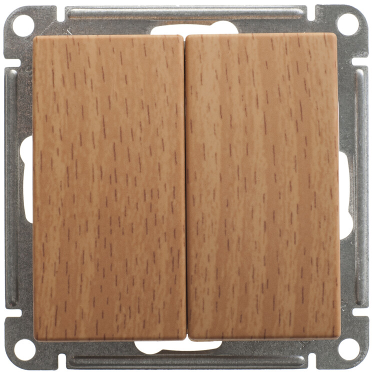 Механизм Schneider Electric W59 (цвет бук) выключателя 2-клавишного подходит для сетей 250 В, на ток до 10 А.