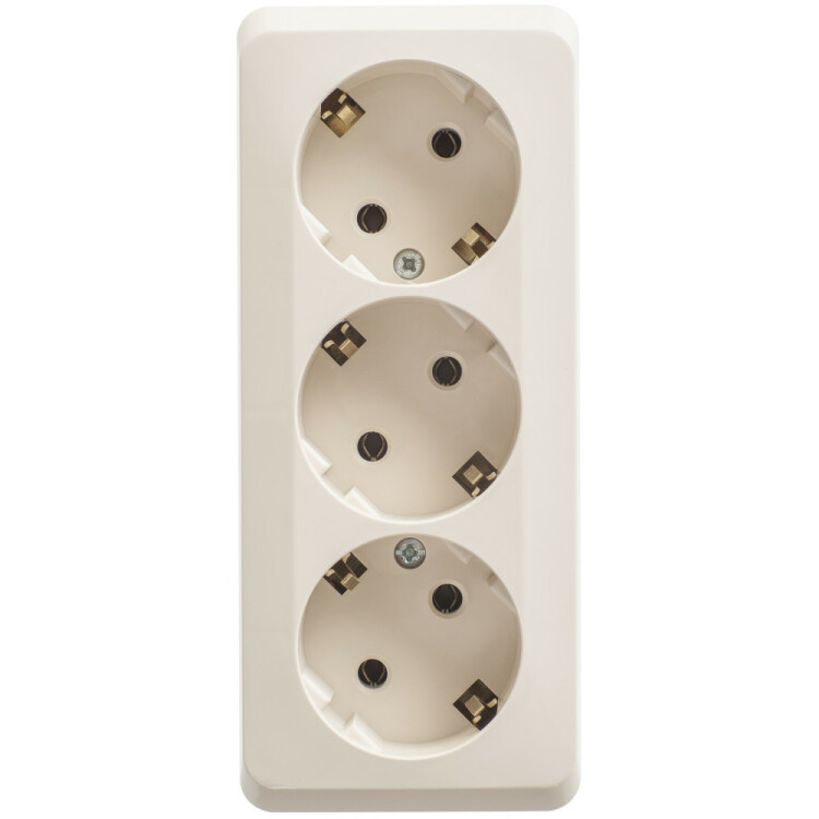 Розетка Systeme Electric (ранее Schneider Electric) ЭТЮД (кремовый, открытой установки) трёхместная с заземлением, без шторок предназначена для применения в сетях до 250В, на ток до 16А. Трёхместная розетка позволяет подключить три устройства в одном месте. Заземление обеспечивает безопасность при косвенном прикосновении. Она проста в установке и удобна в применении. Сделано в России.