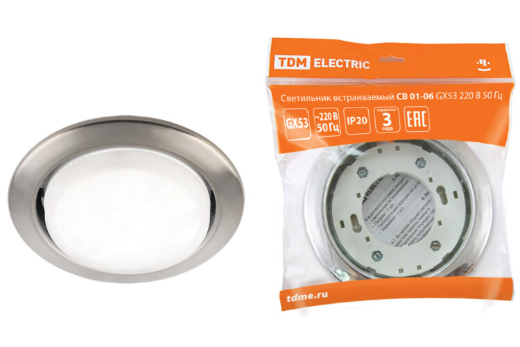 Светильник встраиваемый СВ 01-06 GX53 220 В 50 Гц сатин никель TDM (кр.1шт)