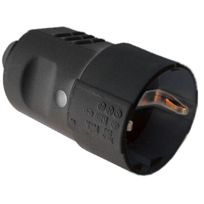 Розетка кабельная, бытовая с центральным вводом кабеля. Черная. IP20 16А 2P+E 230В