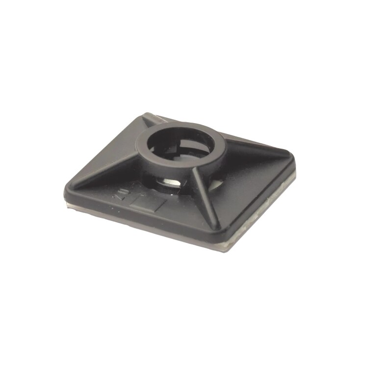 Монтажные базы для двух хомутов на самоклеящейся основе предназначены для фиксация двух хомутов к плоскости. Материал - Полиамид 6.6. Ообенностью монтажной базы является возможность дополнительного крепления монтажных баз на метрический метиз. Для хомута шириной 3.6 мм. Размеры: ширина - 19 мм, длина - 19 мм, толщина - 5 мм. Цвет - черный.