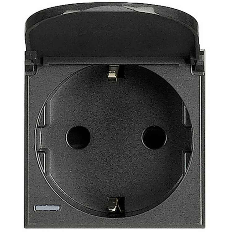 Axolute Розетка 2К+З с крышкой, 10/16 А 250 В с боковыми заземляющими контактами Schuko, с экранированными контактами, клеммы с автоматическим зажимом, цвет антрацит, немецкий стандарт