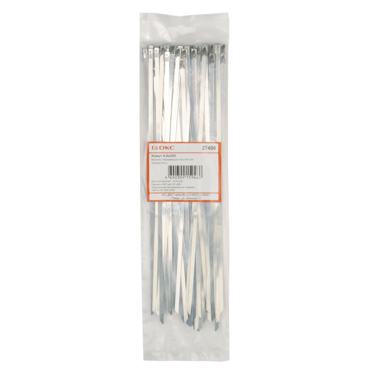 Изделия выполнены из нержавеющей стали AISI 304, отличающейся высокой коррозионной стойкостью, устойчивостью к окислению и отличными низкотемпературными свойствами. Обработанные кромки ленты защищают изоляцию кабеля от повреждений и обеспечивают безопасный монтаж без риска травм. Хомуты оснащены одиночным замком.