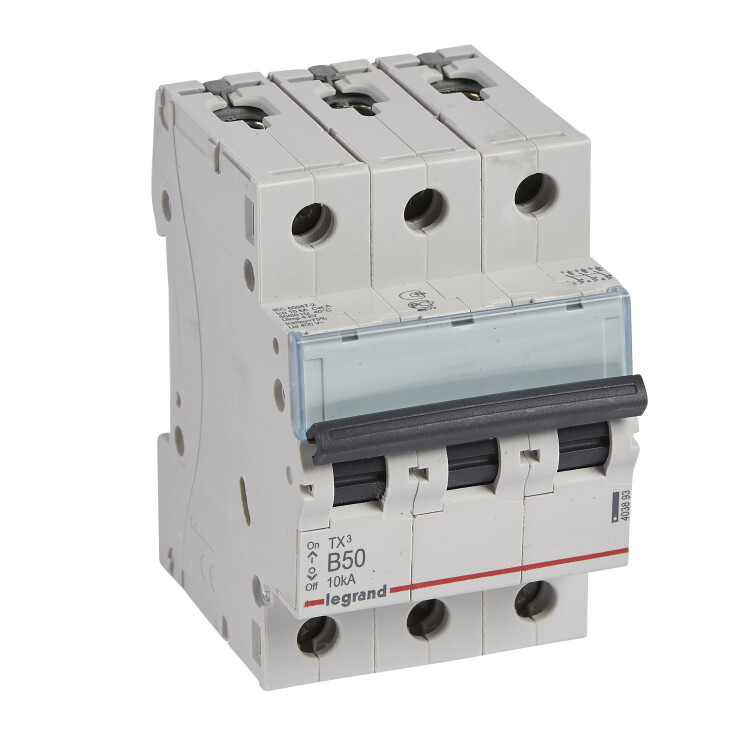 Автоматический выключатель TX³ 6000 - 10 кА - тип характеристики B - 3П - 400 В~ - 50 А - 3 модуля