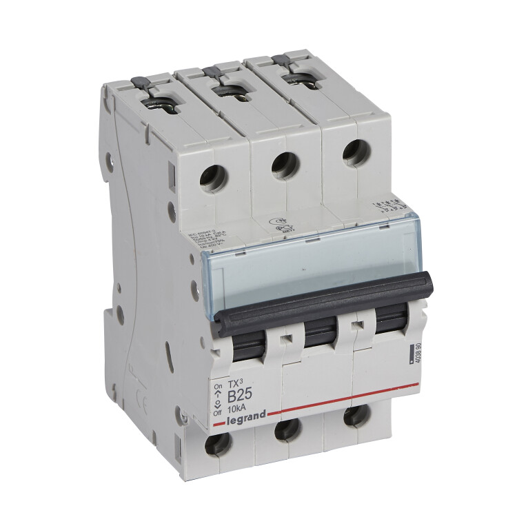 Автоматический выключатель TX³ 6000 - 10 кА - тип характеристики B - 3П - 400 В~ - 25 А - 3 модуля