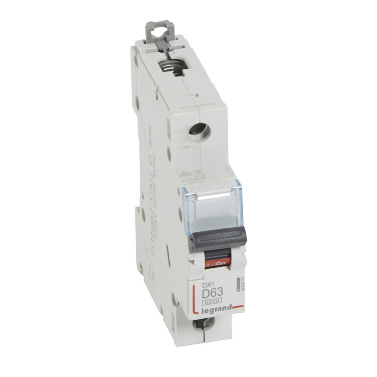Автоматический выключатель DX³ 6000 - 10 кА - тип характеристики D - 1П - 230/400 В~ - 63 А - 1 модуль