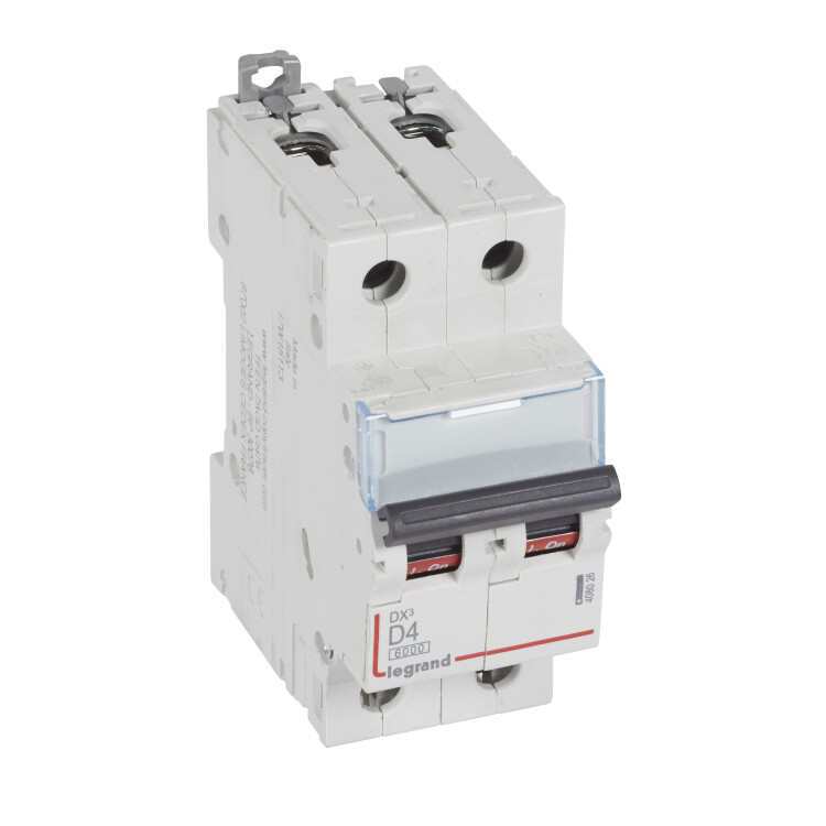 Автоматический выключатель DX³ 6000 - 10 кА - тип характеристики D - 2П - 230/400 В~ - 4 А - 2 модуля