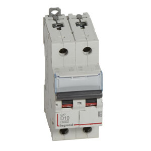 Автоматический выключатель DX³ 6000 - 10 кА - тип характеристики D - 2П - 230/400 В~ - 10 А - 2 модуля