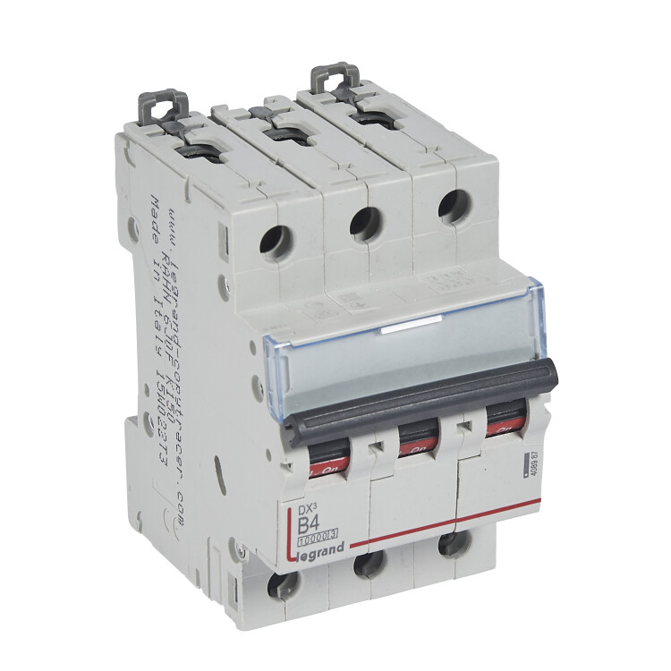 Автоматический выключатель DX³ 10000 - 16 кА - тип характеристики B - 3П - 400 В~ - 4 А - 3 модуля