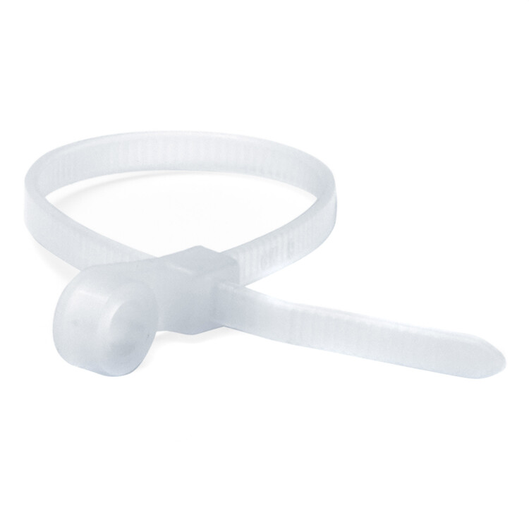 Изделие имеет длину 200 мм, ширину 4,8 мм. Не рекомендуется использовать стяжки в зонах, где они будут подвергаться воздействию прямых солнечных лучей. Температура монтажа составляет от -30 °С до +60 °С, температура эксплуатации – от -45 °С до +85 °С. Материал – полиамид. Цвет – белый. В упаковке 100 штук).