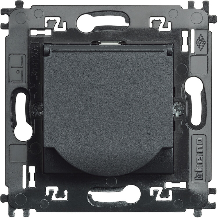 LivingLight Розетка 2К+З с крышкой и суппортом, цвет антрацит (кр.10ШТ)