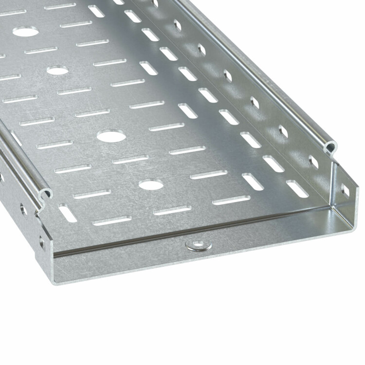 Перфорированные листовые лотки ДКС применяются для прокладки кабеля как в помещении, так и на открытом воздухе. Лотки отличаются высокой несущей способностью – подформовка, производимая при производстве этой продукции, создает дополнительное ребро жесткости, что увеличивает несущую способность системы до 54%. Перфорация сокращает вес конструкции. В лотках имеются отверстия для отвода кабеля. Степень пыле- и влагозащиты перфорированных лотков – IP 10 при использовании крышек, входящих в состав системы. Метод соединения "мама-папа" применяемый для системы, существенно сокращает время монтажа и создает непрерывный контур. Конструктив листовых лотков ДКС предупреждает повреждение кабеля при прокладке.