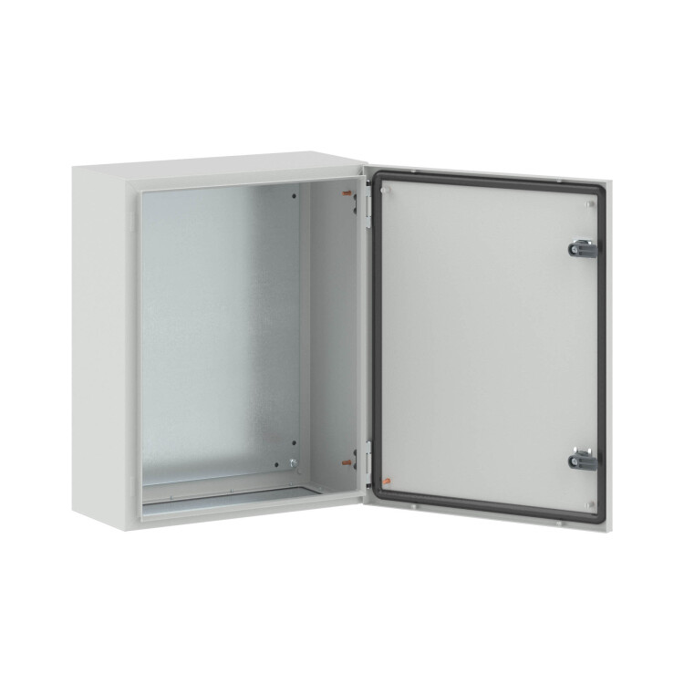 В комплект поставки корпусов входят: быстросъемный фланец, монтажные аксессуары, монтажная плата. По умолчанию шкафы укомплектованы стандартным замком с личинкой под ключ с двойной бородкой, однако замок при необходимости может быть заменен. Сборные металлические шкафы CE соответствуют российским стандартам, они могут устанавливаться в сейсмоопасных зонах и имеют необходимые сертификаты. Корпуса со сплошной дверью применяются в системах автоматизации. Уровень ударопрочности корпусов - IK 10.