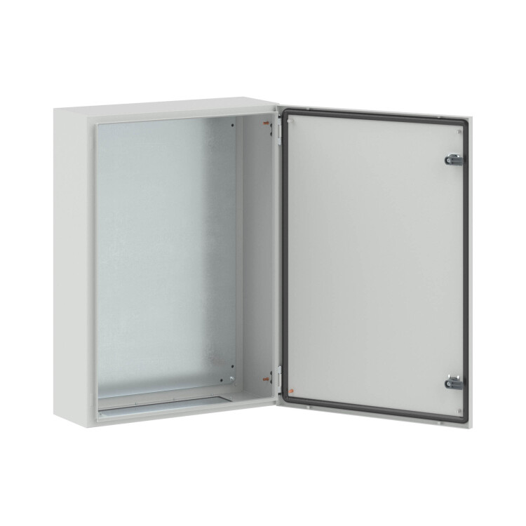 В комплект поставки корпусов входят: быстросъемный фланец, монтажные аксессуары, монтажная плата. По умолчанию шкафы укомплектованы стандартным замком с личинкой под ключ с двойной бородкой, однако замок при необходимости может быть заменен. Сборные металлические шкафы CE соответствуют российским стандартам, они могут устанавливаться в сейсмоопасных зонах и имеют необходимые сертификаты. Корпуса со сплошной дверью применяются в системах автоматизации. Уровень ударопрочности корпусов - IK 10.