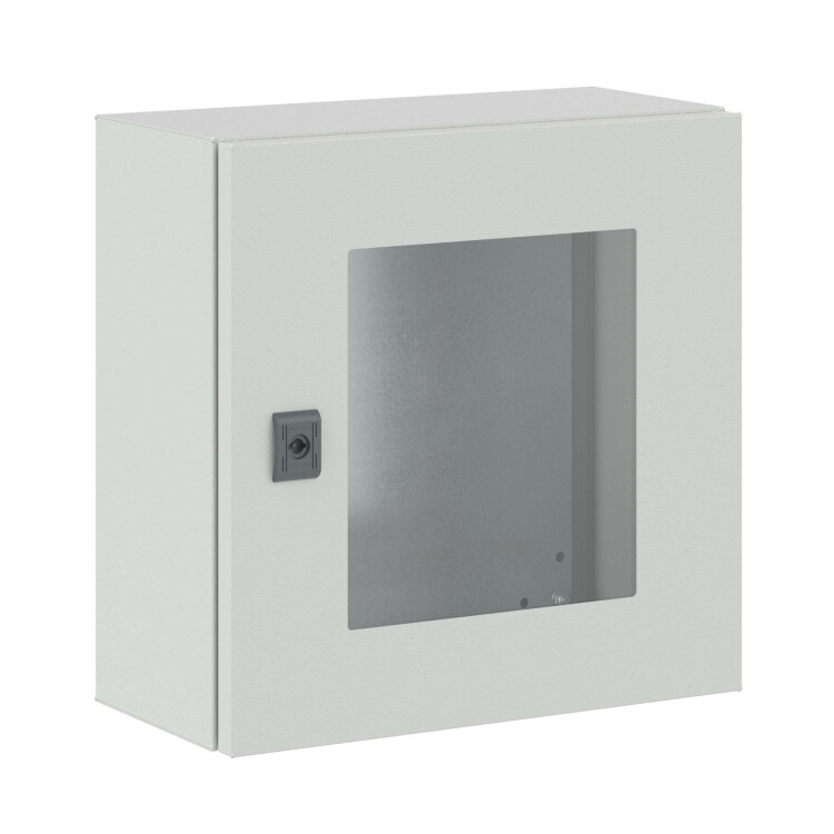 В комплект поставки корпусов входят: фланец, монтажные аксессуары, монтажная плата. По умолчанию шкафы укомплектованы стандартным замком с личинкой под ключ с двойной бородкой, однако замок при необходимости может быть заменен. Сборные металлические шкафы CE соответствуют российским стандартам, они могут устанавливаться в сейсмоопасных зонах и имеют необходимые сертификаты. Корпуса с прозрачной дверью чаще всего используются в системах мониторинга, защиты и автоматизации. Уровень ударопрочности корпусов - IK 10. Закаленное стекло устойчиво к повреждениям.