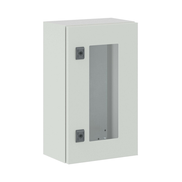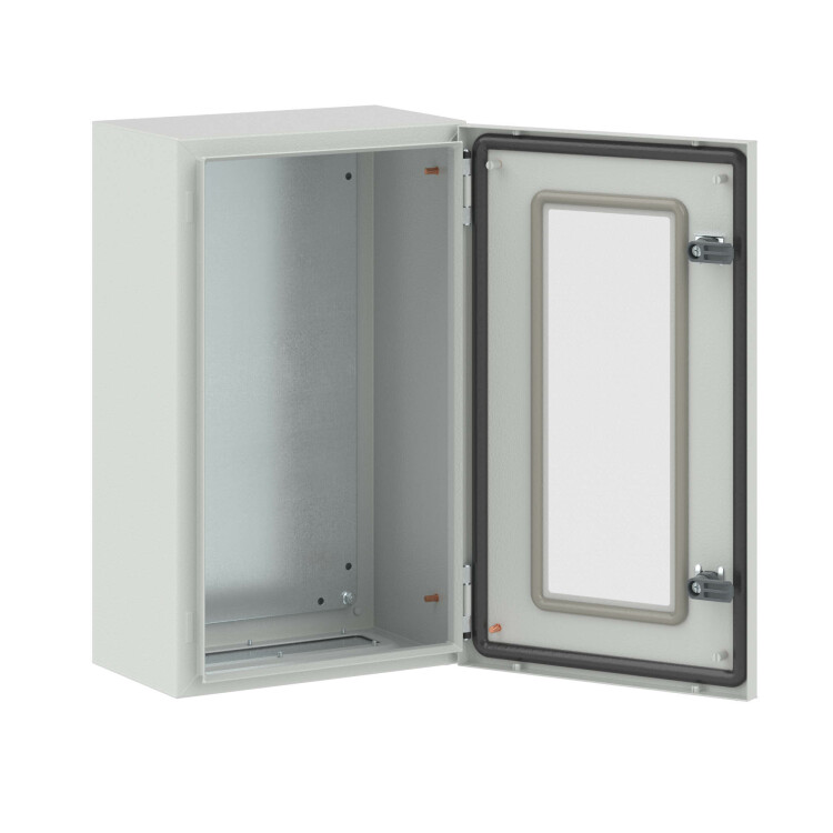 В комплект поставки корпусов входят: фланец, монтажные аксессуары, монтажная плата. По умолчанию шкафы укомплектованы стандартным замком с личинкой под ключ с двойной бородкой, однако замок при необходимости может быть заменен. Сборные металлические шкафы CE соответствуют российским стандартам, они могут устанавливаться в сейсмоопасных зонах и имеют необходимые сертификаты. Корпуса с прозрачной дверью чаще всего используются в системах мониторинга, защиты и автоматизации. Уровень ударопрочности корпусов - IK 10. Закаленное стекло устойчиво к повреждениям.