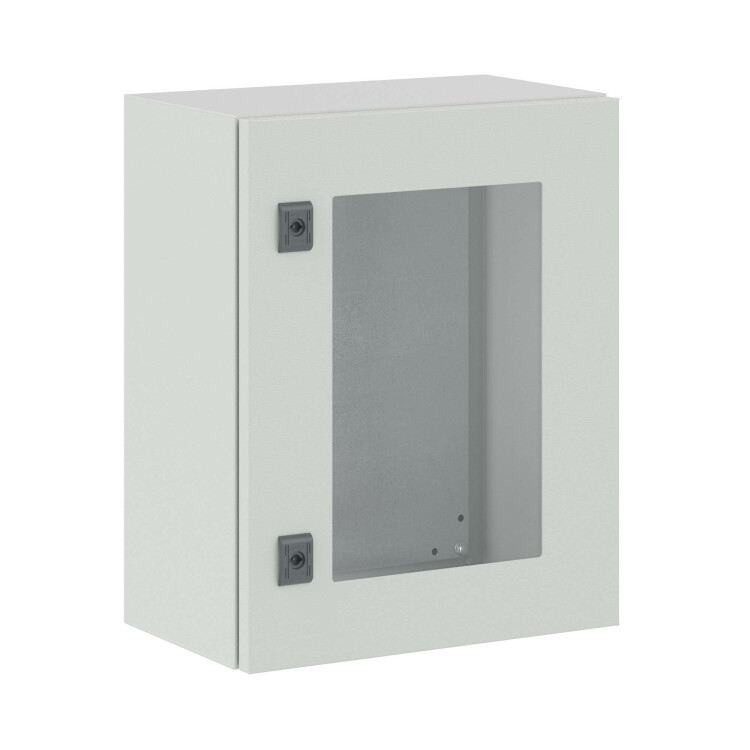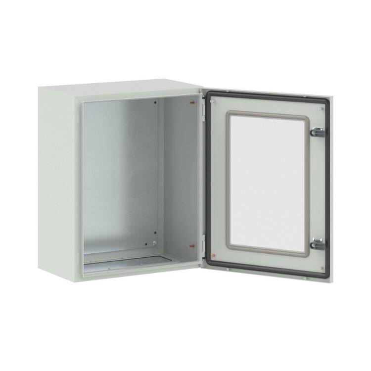RAM block система универсальных металлических корпусов сварных и сборных, а также стоек управления. Сборные металлические шкафы СE предназначены для защиты от внешнего воздействия оборудования в системах автоматизации и распределения электроэнергии. Корпуса CE имеют всего 4 сварных шва, что повышает прочность конструкции. Корпуса изготавливаются из листовой стали толщиной 1,5 мм с порошковой полиэфирной окраской. Полиуретановый уплотнитель улучшает герметизацию (максимальная степень пыле- и влагозащиты - IP 65 - IP 66). В комплект поставки корпусов входят: фланец, монтажные аксессуары, монтажная плата. По умолчанию шкафы укомплектованы стандартным замком с личинкой под ключ с двойной бородкой, однако замок при необходимости может быть заменен. Сборные металлические шкафы CE соответствуют российским стандартам, они могут устанавливаться в сейсмоопасных зонах и имеют необходимые сертификаты. Корпуса с прозрачной дверью чаще всего используются в системах мониторинга, защиты и автоматизации. Уровень ударопрочности корпусов - IK 10. Закаленное стекло устойчиво к повреждениям. Габариты навесного шкафа: 500х400х250 мм.