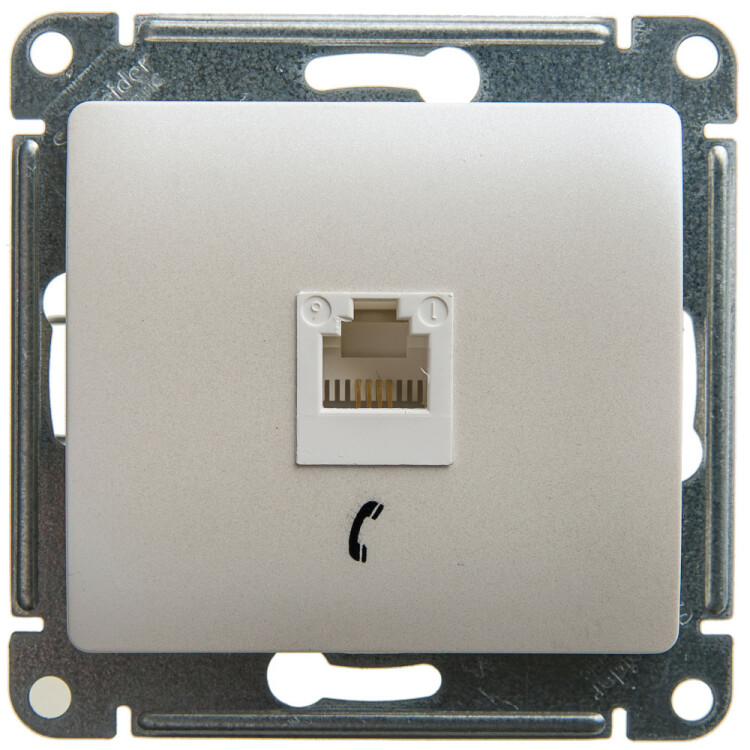 Механизм Systeme Electric (ранее Schneider Electric) серии Glossa (цвет перламутр) розетки телефонной с разъёмом RJ11 пред назначен для удобного и быстрого подключения вашего телефона, модема или факса к телефонной сети. Выполнен из материала PС+ASA, стойкого к УФ-излучению и появлению царапин.