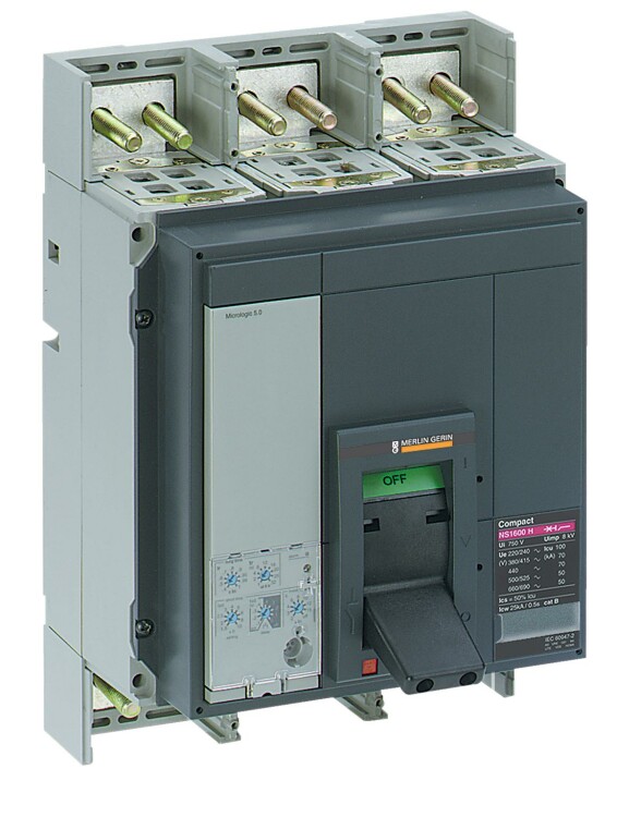 Выключатель-разъединитель Compact NS1250N Schneider Electric, 3-полюсный, номинальный ток 1250 А, Icu = 50 kA при 380/415 В - с блоком управления Micrologic 2.0A - с ручным управлением - исполнение – стационарный - переднее присоединение - монтаж - на панели.Аппараты ComPact NS предназначены для защиты распределительных сетей напряжением до 690 В пер. тока.Обеспечивают защиту от перегрузки и короткого замыкания.