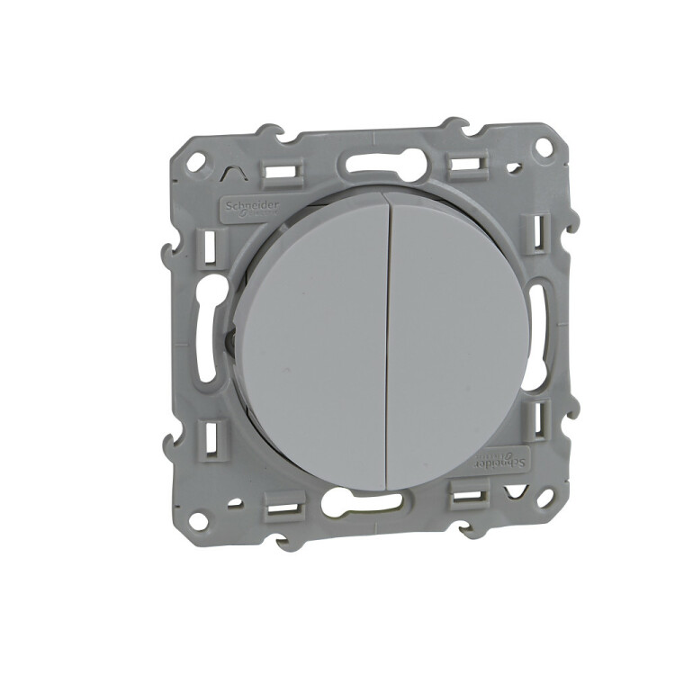 Выключатель двухклавишный Schneider Electric ODACE (цвет белый) с безвинтовыми зажимами предназначен для сетей до 250 В на ток до 10 А.