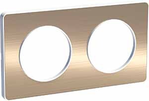Рамка Schneider Electric ODACE (материал полированная бронза) двухместная для механизма цвета белый.