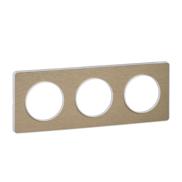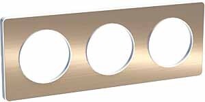 Рамка Schneider Electric ODACE (материал полированная бронза) трёхместная для механизма цвета белый.