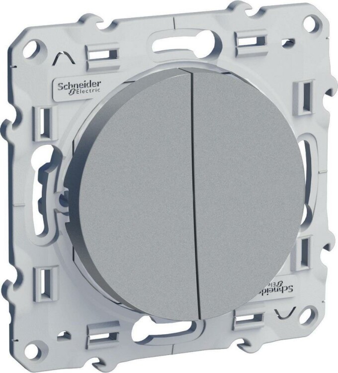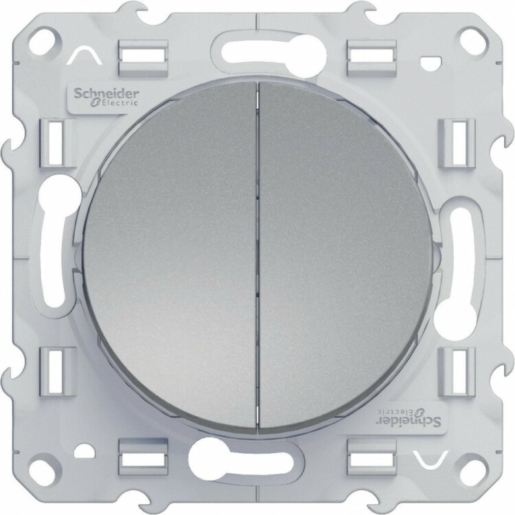 Переключатель двухклавишный Schneider Electric ODACE (цвет алюминий) предназначен для сетей до 250 В на ток до 10 А.