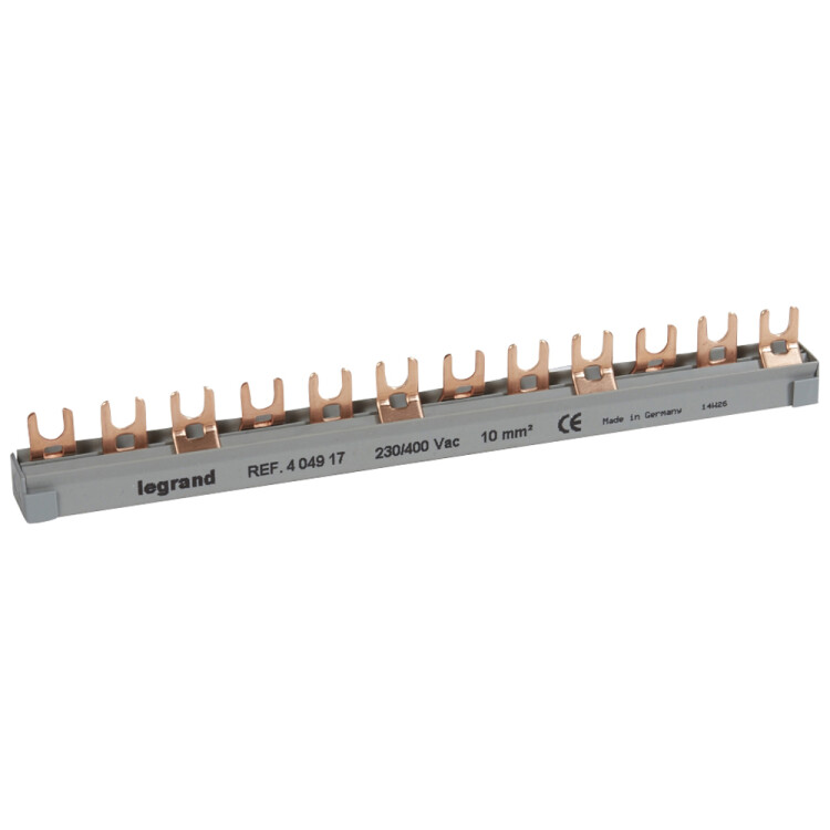 Гребенчатая шина серии HX3 для быстрого и упорядоченного распределения питания между модульными аппаратами. Применяется в щитах для сокращения времени монтажа, повышения надежности соединений и снижения количества перемычек по сравнению с проводным подключением.