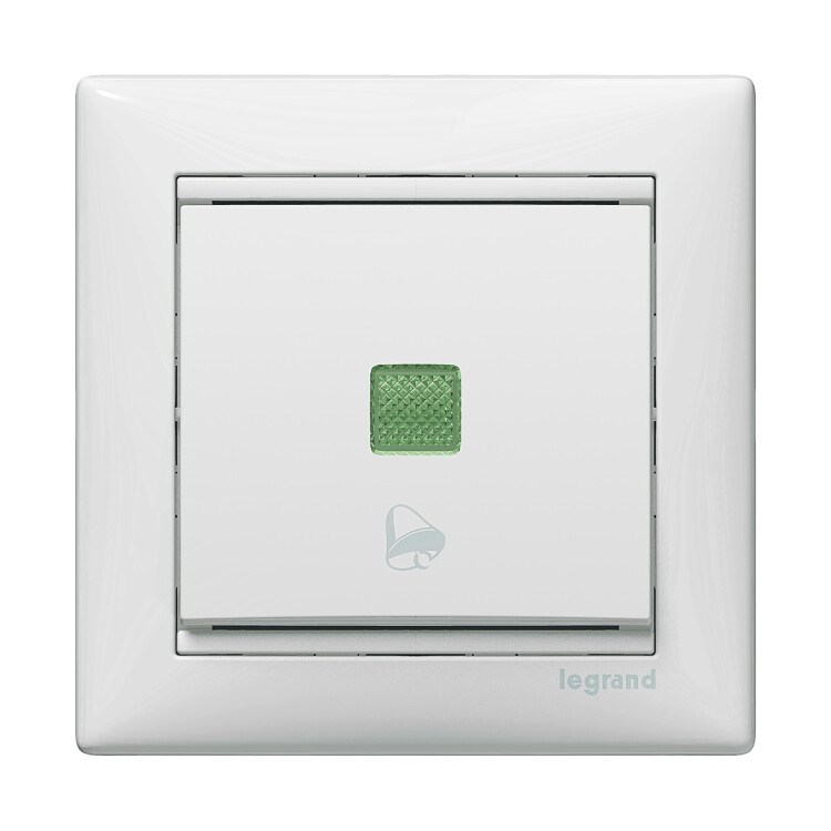 Выключатель кнопочный одноклавишный с символом звонка - Legrand Valena - 10А 250В схема 1P безвинтовые зажимы - белый