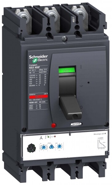 Автоматический выключатель Compact NSX400N Schneider Electric, 3P3d - номинальный ток 320 А - Icu = 50 кА 380/415 В - Ics=100% Icu - с электронным расцепителем Micrologic 2.3-M (защита электродвигателей LSOI) - ШхВхГ - 160x290x150 мм - исполнение - стационарный - монтаж - на DIN-рейке или плате. Преимущества: Прямой доступ к экономии затрат, безопасность и защита, контроль и измерение параметров электроэнергии, надежность энергоснабжения, простота и удобство. Применения: Применение в системах электроснабжения объектов любого масштаба – от крупнейших промышленных предприятий до офисных зданий для защиты распределительных сетей, генераторов, кабелей большой протяженности, электродвигателей.