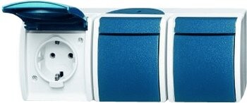 Розетка SCHUKO 16А 250В IP44, тройная, для открытого монтажа, серия ocean, цвет серый/сине-зелёный (кр. 1шт)