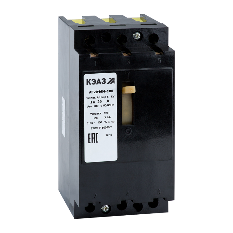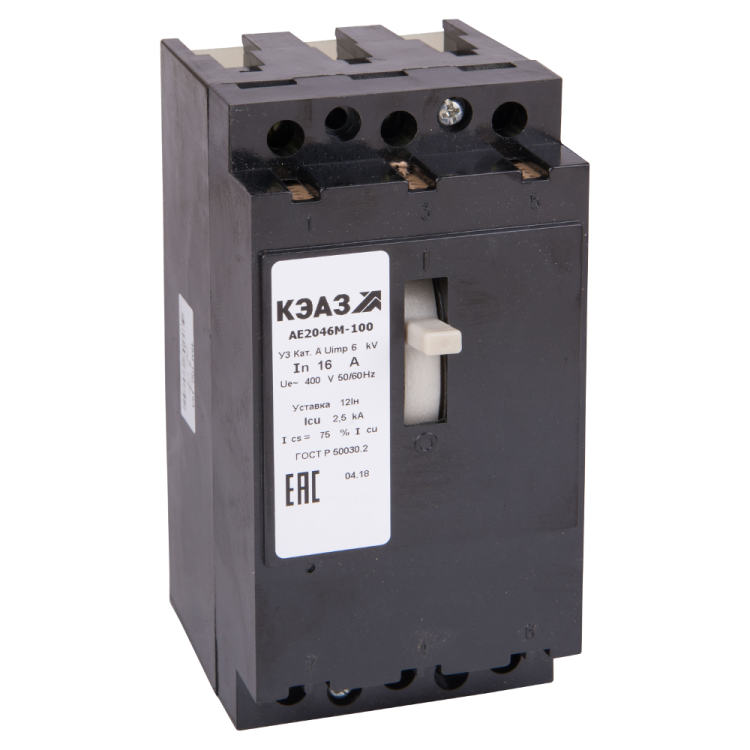 Блочный автоматический 3 полюсный выключатель переменного тока с предельной коммутационной способностью при переменном токе 6 кА на номинальный ток 16 А .