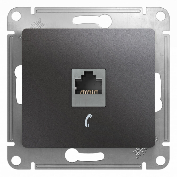 Механизм Systeme Electric (ранее Schneider Electric) серии Glossa (цвет графит) розетки телефонной с разъёмом RJ11 предназ начен для удобного и быстрого подключения вашего телефона, модема или факса к телефонной сети. Выполнен из материала PС+ASA, стойкого к УФ-излучению и появлению царапин.